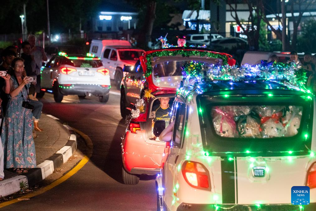 Cars with Christmas-themed decorations are seen in Johannesburg, South Africa, Dec. 21, 2025. Johannesburg has been filled with festive atmosphere as the Christmas approaches. (Photo by Shiraaz Mohamed/Xinhua)