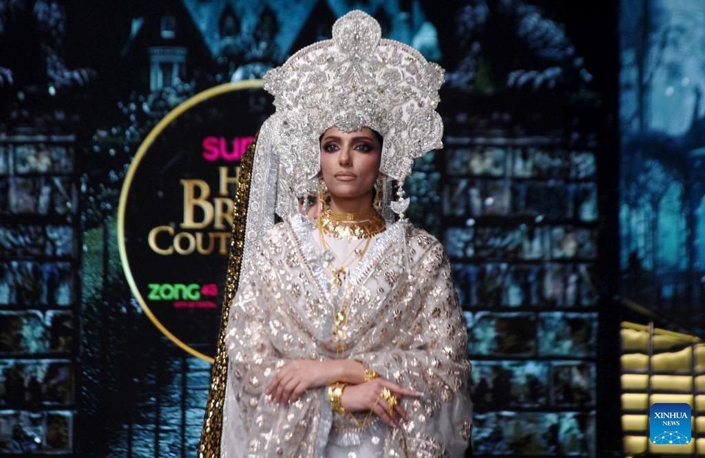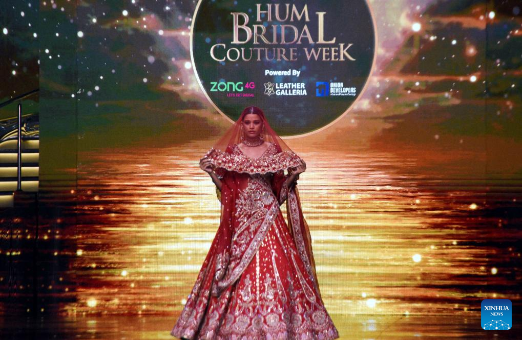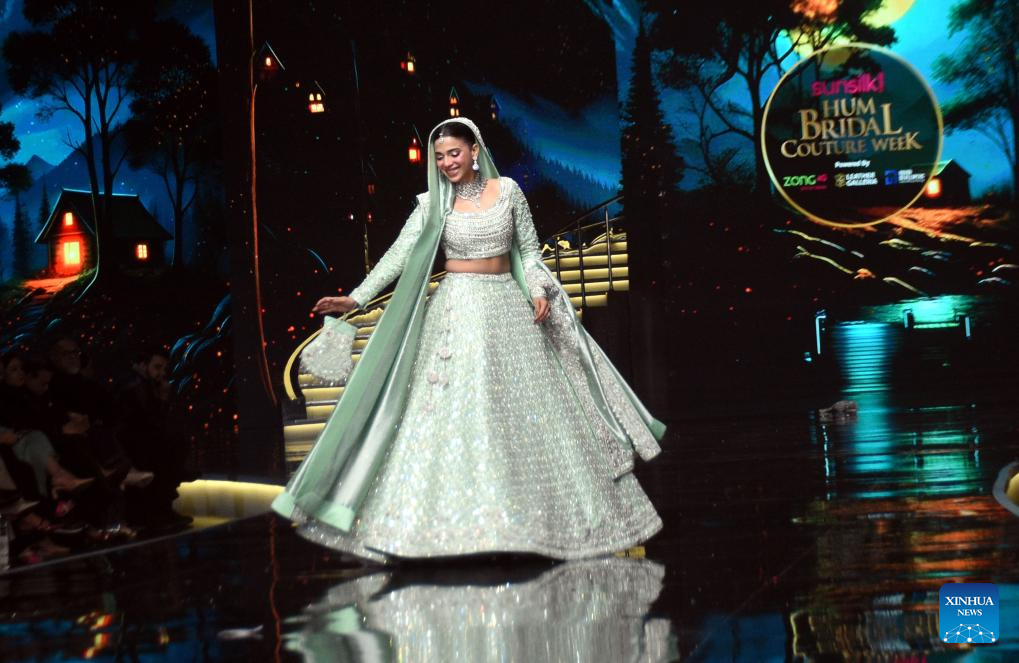 Models present creations during the Hum Bridal Couture Week fashion show in Lahore, Pakistan on Dec. 21, 2025. (Photo by Sajjad/Xinhua)