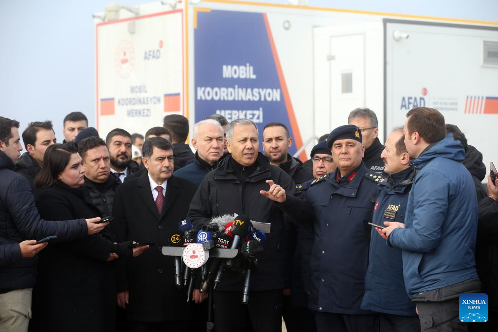 Turkish Interior Minister Ali Yerlikaya briefs the media at the plane crash site near Kesikkavak village in Ankara's Haymana district, Türkiye, on Dec. 24, 2025. Libya's army chief of staff, Mohammed al-Haddad, and four other military officials were killed when their business jet crashed south of Ankara on Tuesday evening, Libyan and Turkish authorities said.