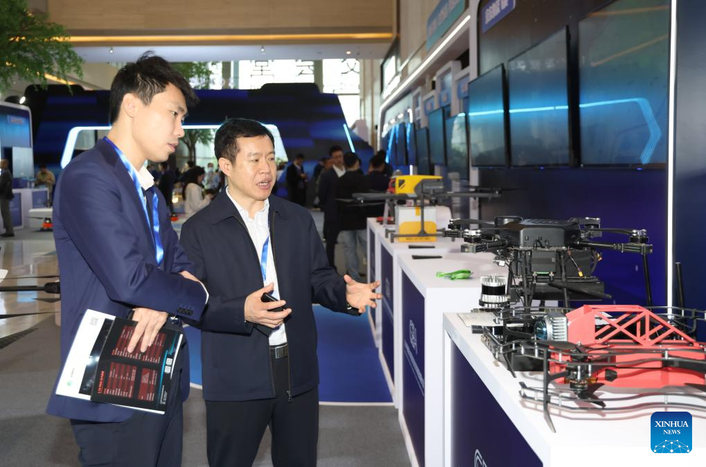 Participants visit the exhibition area of the 2025 Conference on High-Quality Development of Low-Altitude Economy in Guangdong-Hong Kong-Macao Greater Bay Area (GBA) in Guangzhou, south China's Guangdong Province, Dec. 25, 2025. (Xinhua/Lu Hanxin)