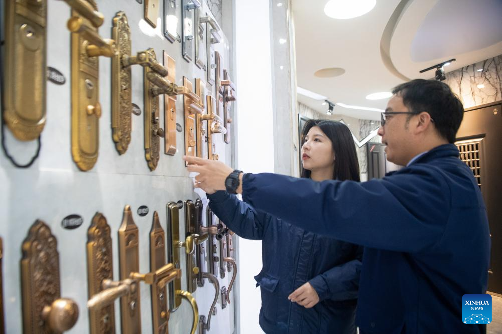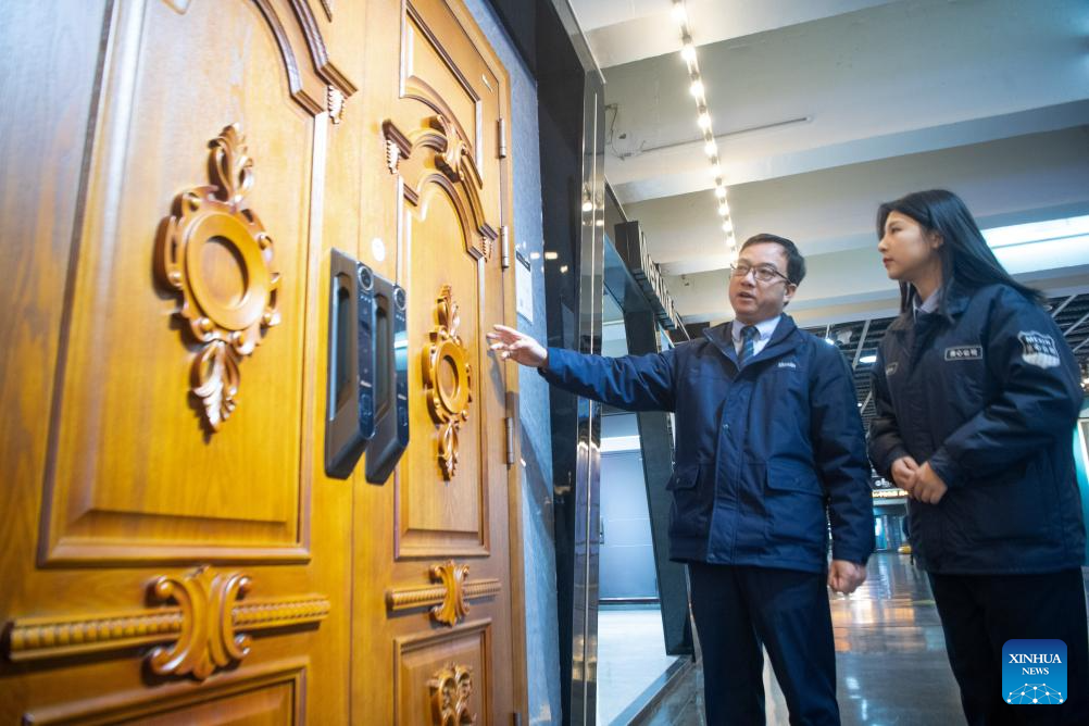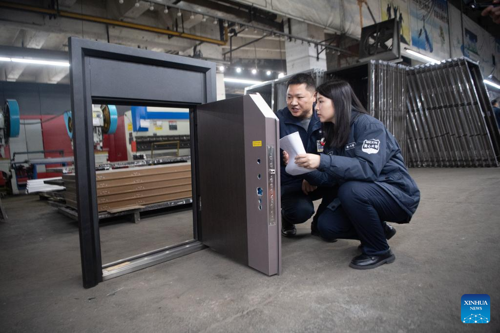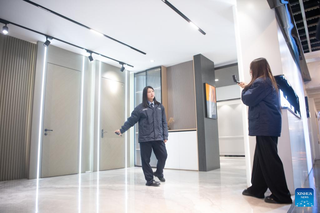A logistics personnel of Mexin Group transports door products in southwest China's Chongqing Municipality, Dec. 15, 2025. (Xinhua/Tang Yi)
