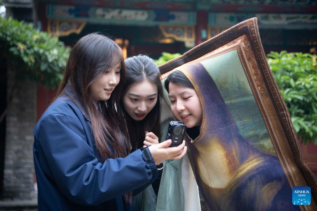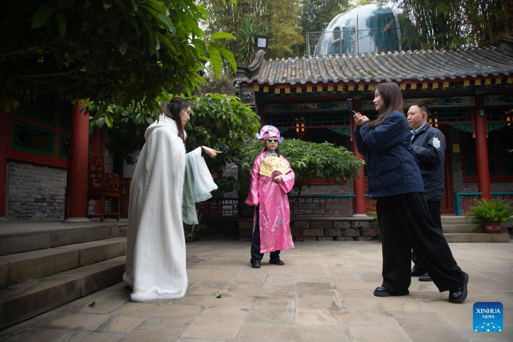 Tang Hexia (R) and Wen Yu (C) film a short video in southwest China's Chongqing Municipality, Dec. 10, 2025. (Xinhua/Tang Yi)