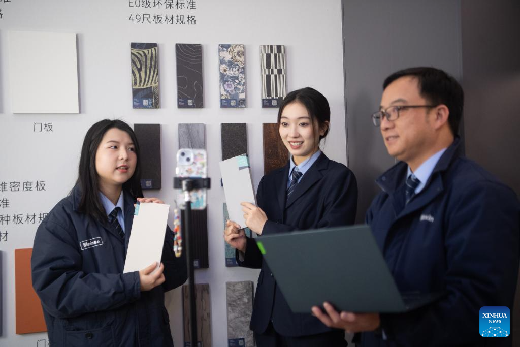 Tang Hexia, 29, an employee of Mexin Group, a door and window manufacturer based in Chongqing, became a cross-border e-commerce operations manager in 2025. She joined the cross-border e-commerce department of the company with colleagues Deng Yong and Wen Yu.