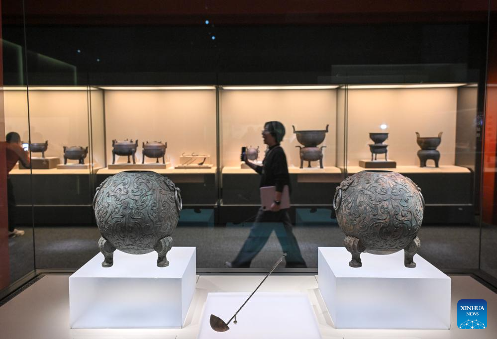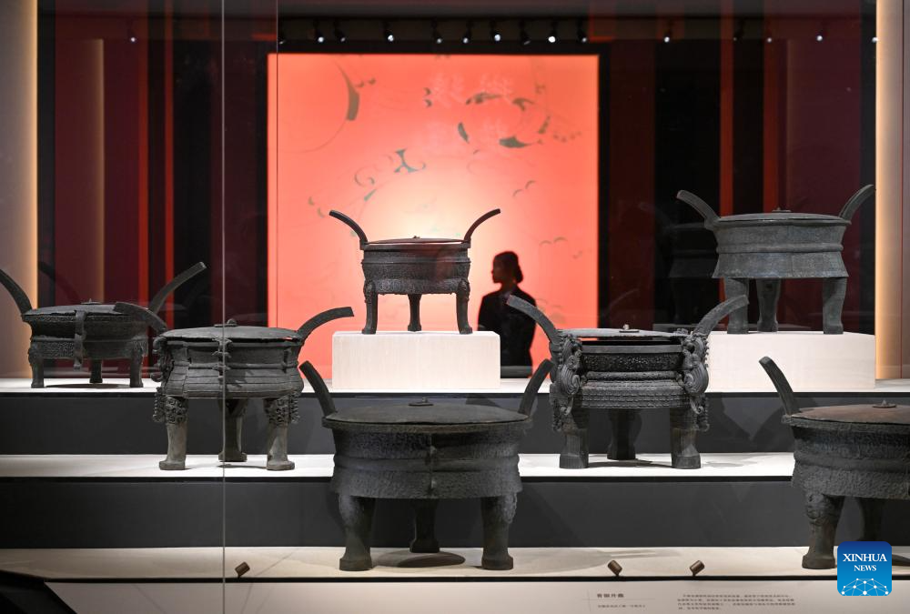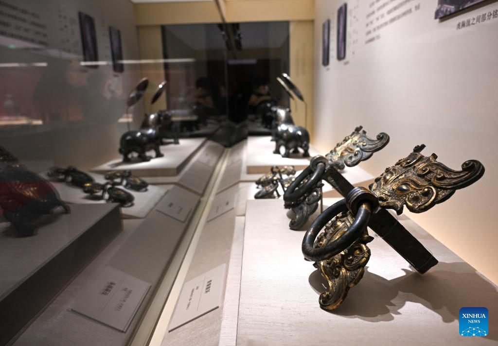 This photo taken on Dec. 26, 2025 shows exhibits at the exhibition "Echoes of King Kaolie -- Archaeological Discoveries from the Wuwangdun Tomb No. 1" in the National Museum of China in Beijing, capital of China. The exhibition kicked off here on Friday, featuring more than 200 pieces of exhibits unearthed from the Wuwangdun Tomb No. 1.