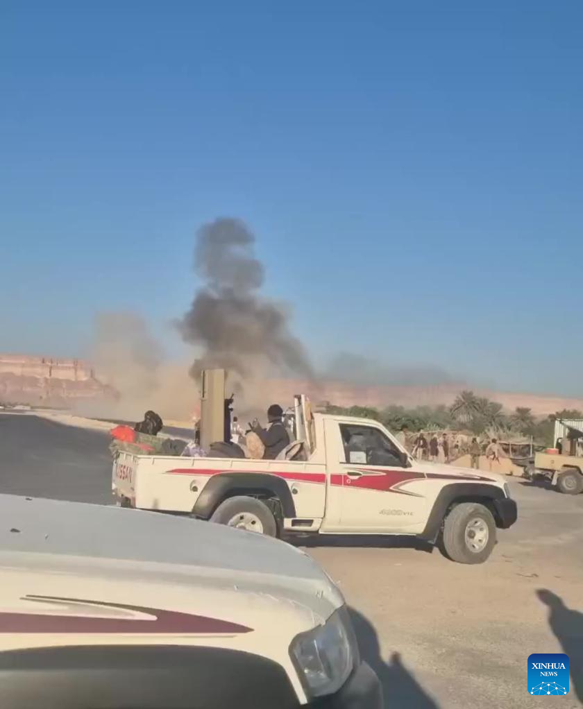 This video screenshot shows militants affiliated with the Southern Transitional Council (STC) near the site of airstrikes in Hadramout, Yemen, Dec. 26, 2025. Saudi warplanes on Friday carried out airstrikes on military sites affiliated with the Southern Transitional Council (STC) in Yemen's southeastern oil-rich province of Hadramout, a local security official told Xinhua. Meanwhile, STC-affiliated media outlets reported that the airstrikes hit their forces in the Ghayl Bin Yamin area of Hadramout. Saudi Arabia, which backs the internationally recognized government of Yemen, has so far made no official comment on the airstrikes. (STC/Handout via Xinhua)