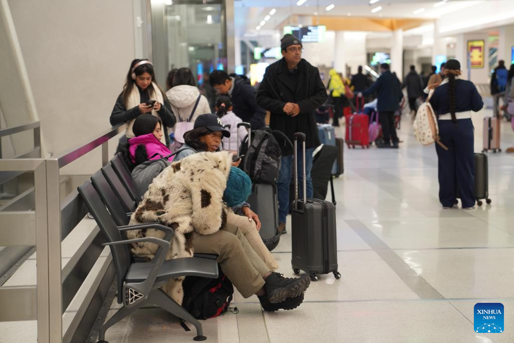 Stranded passengers are seen at LaGuardia Airport in New York, the United States, on Dec. 26, 2025. A snowstorm hitting New York on Friday, which has caused flight delays and cancellations. (Xinhua/Zhang Fengguo)