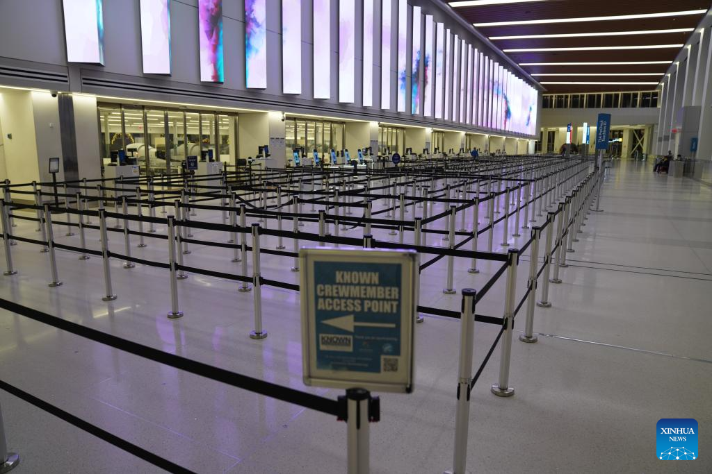 This photo taken on Dec. 26, 2025 shows an empty check in area at LaGuardia Airport in New York, the United States. A snowstorm hitting New York on Friday, which has caused flight delays and cancellations. (Xinhua/Zhang Fengguo)