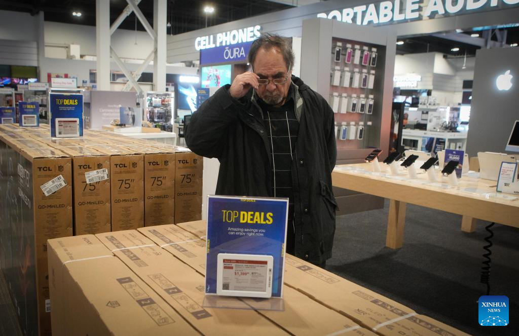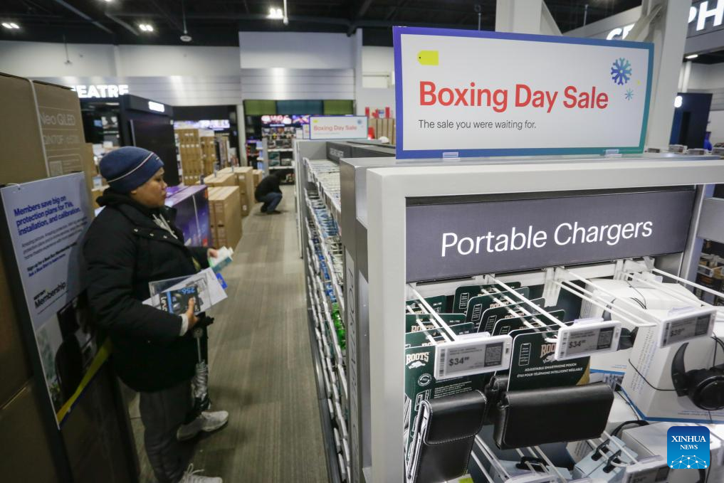 A customer browses for deals at an electronics store during Boxing Day sales in Vancouver, British Columbia, Canada, Dec. 26, 2025. (Photo by Liang Sen/Xinhua)