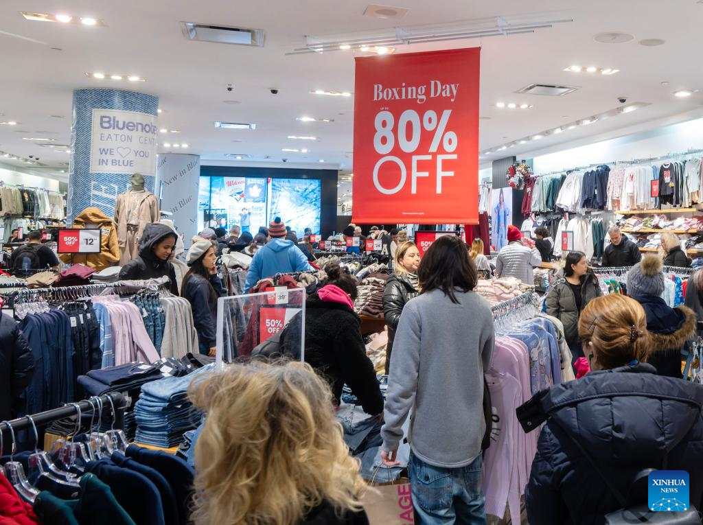 People shop at a clothing store during Boxing Day sales in Toronto, Canada, on Dec. 26, 2025. (Photo by Zou Zheng/Xinhua)