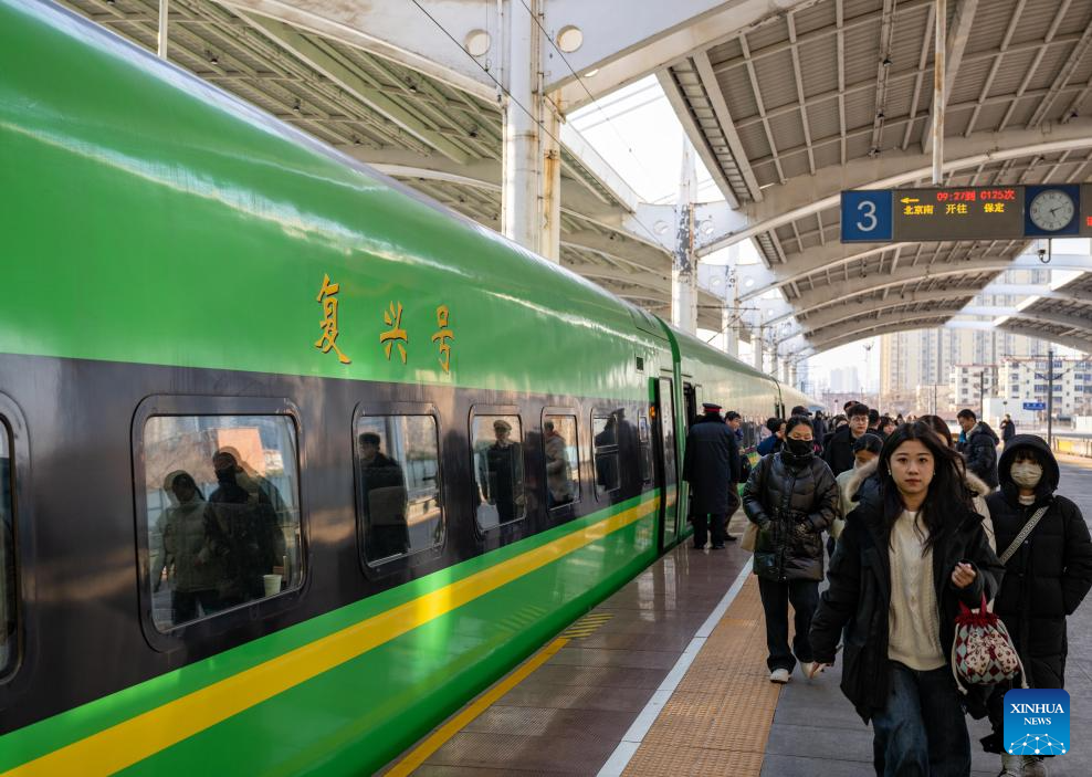 Passengers get off train C125 at Baoding Railway Station along the Tianjin-Baoding Railway in Baoding, north China's Hebei Province, Dec. 27, 2025. The Tianjin-Baoding Railway, which began its operation on Dec. 28, 2015, is about to celebrate the 10th anniversary of its opening.