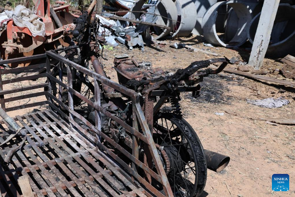 This photo taken on Dec. 29, 2025 shows a damaged motorcycle in Sa Kaew province near the Thailand-Cambodia border in Thailand. Thailand and Cambodia signed a joint statement on Saturday to agree on a ceasefire from 12:00 p.m. local time.