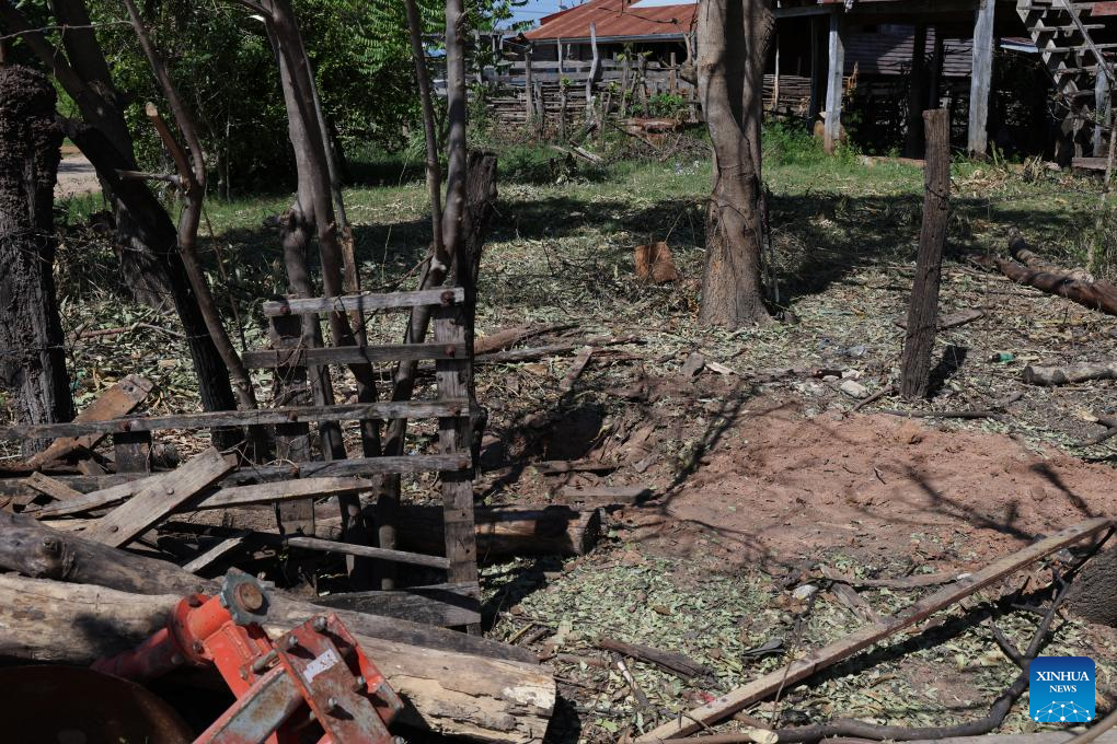 This photo taken on Dec. 29, 2025 shows a crater in Sa Kaew province near the Thailand-Cambodia border in Thailand. Thailand and Cambodia signed a joint statement on Saturday to agree on a ceasefire from 12:00 p.m. local time.