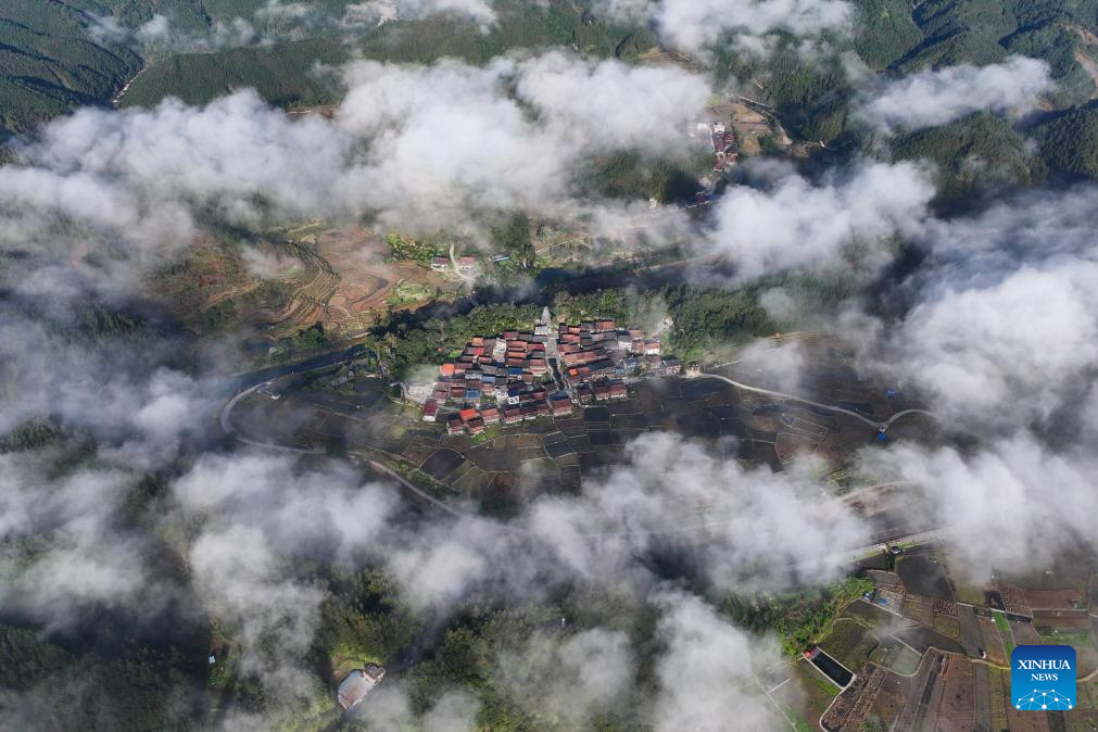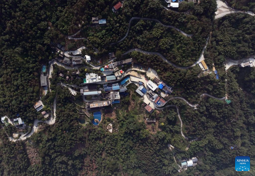 An aerial drone photo taken on Nov. 28, 2025 shows a hamlet in Dongtou Town of Rongshui Miao Autonomous County, south China's Guangxi Zhuang Autonomous Region.