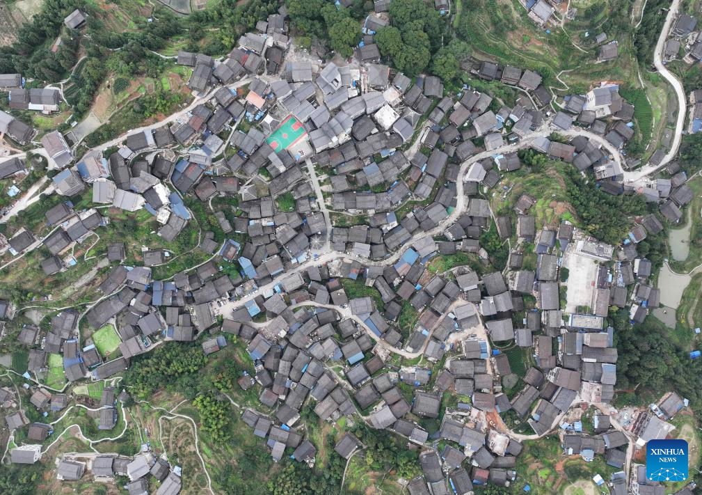 An aerial drone photo taken on Nov. 5, 2025 shows a view of Gaoding Village in Dudong Town of Sanjiang Dong Autonomous County, south China's Guangxi Zhuang Autonomous Region.