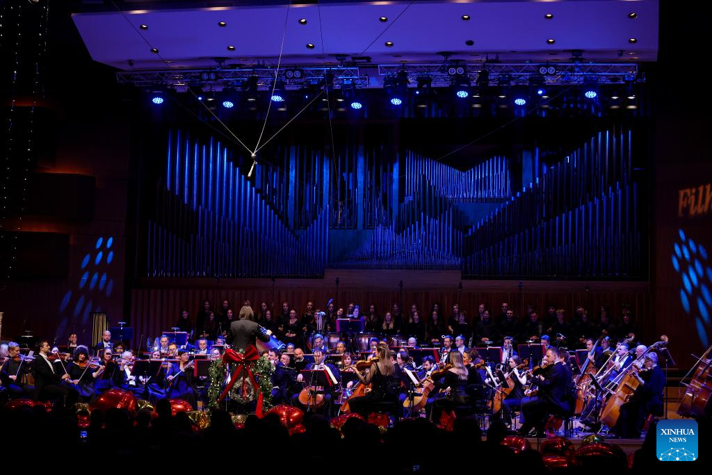 The Zagreb Philharmonic Orchestra performs during the Philharmonic Ball 2025 at Vatroslav Lisinski Concert Hall in Zagreb, Croatia, on Dec. 30, 2025. (Matija Habljak/PIXSELL via Xinhua)