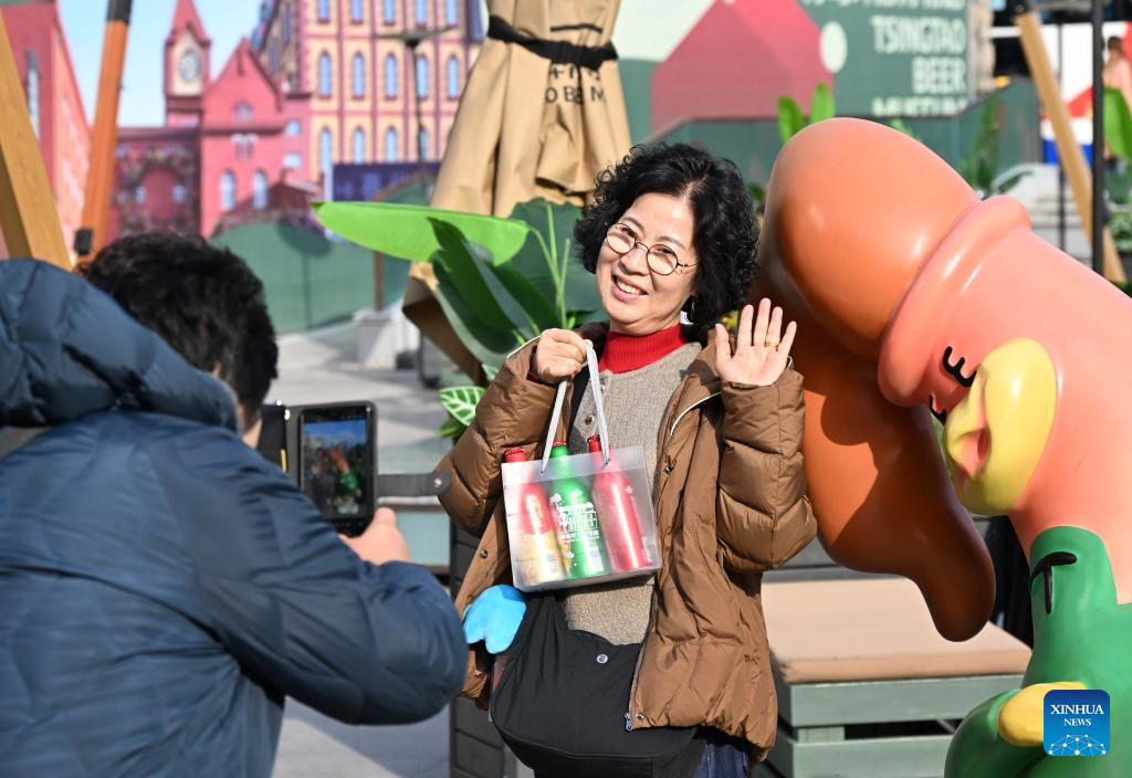 A South Korean tourist poses for photos at Tsingtao Beer Museum in Qingdao City, east China's Shandong Province, Dec. 31, 2025.