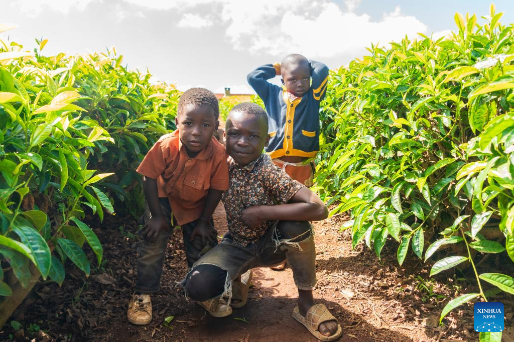 Children are pictured at a tea garden in Kiambu, Kenya, Jan. 1, 2026. (Xinhua/Xie Jianfei)