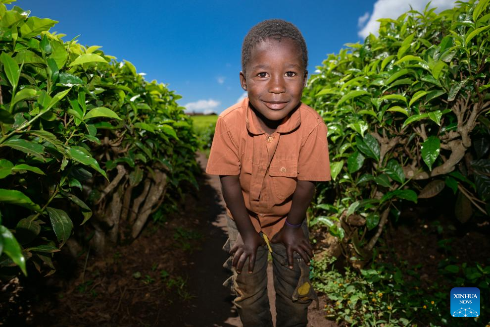 A boy poses for a photo at a tea garden in Kiambu, Kenya, Jan. 1, 2026. (Xinhua/Yang Guang)