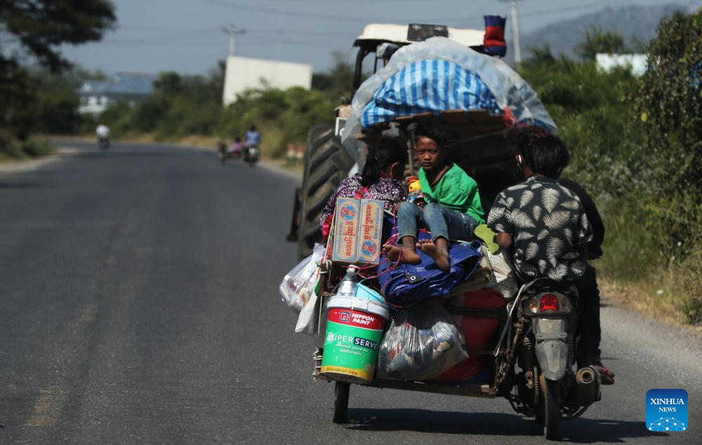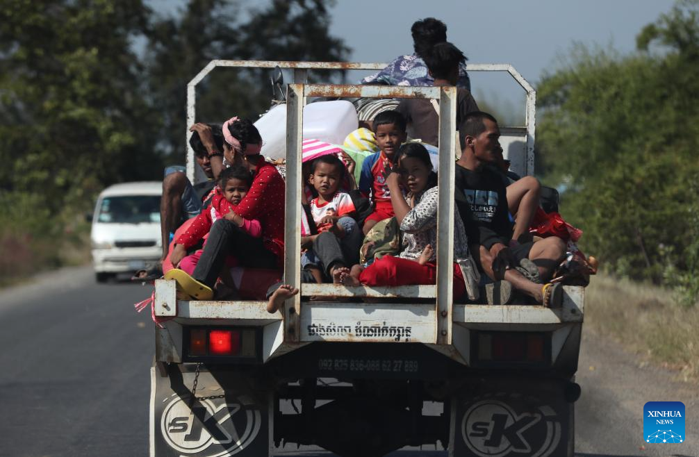 Cambodian evacuees return home in Battambang province, Cambodia on Dec. 30, 2025. Some 167,478 Cambodian evacuees have so far returned to their homes, Cambodia's Ministry of Interior said in a press release on Thursday. (Agence Kampuchea Presse/Handout via Xinhua)