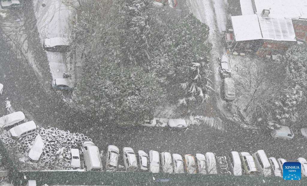 This photo taken on Jan. 1, 2026 shows the view of a street in snow in Istanbul, Türkiye. (Xinhua/Liu Lei)