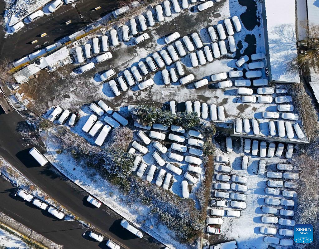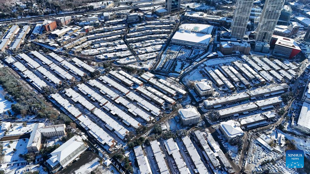 An aerial drone photo taken on Jan. 1, 2026 shows the view after a snowfall in Istanbul, Türkiye. (Xinhua/Liu Lei)