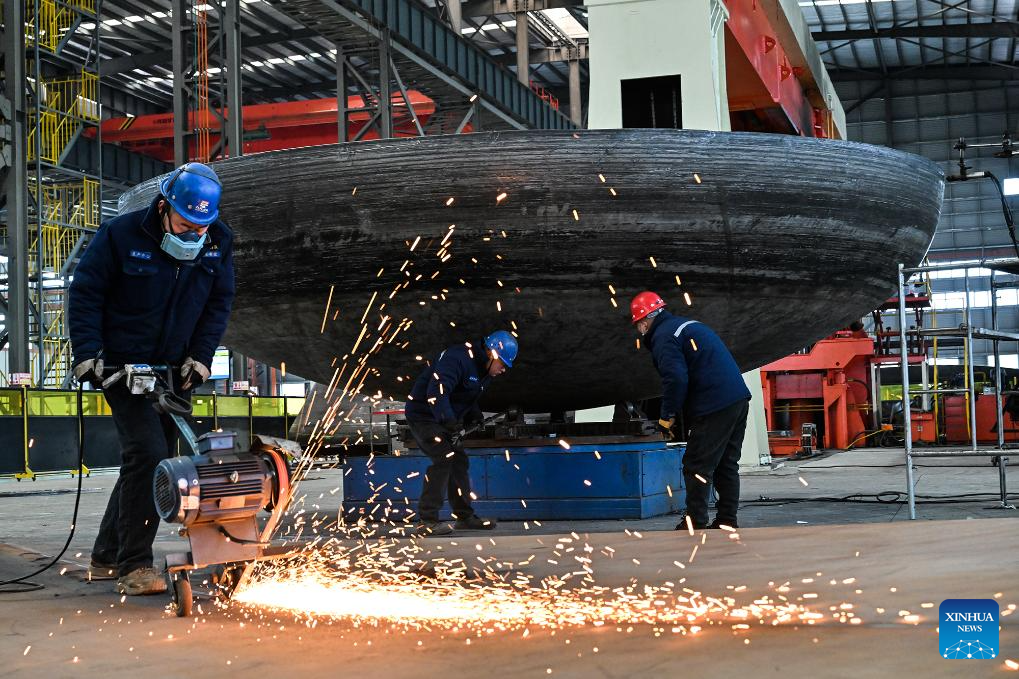 Workers are engaged in grinding operations at a production workshop of a company in Yucheng County, central China's Henan Province, on Jan. 1, 2026.