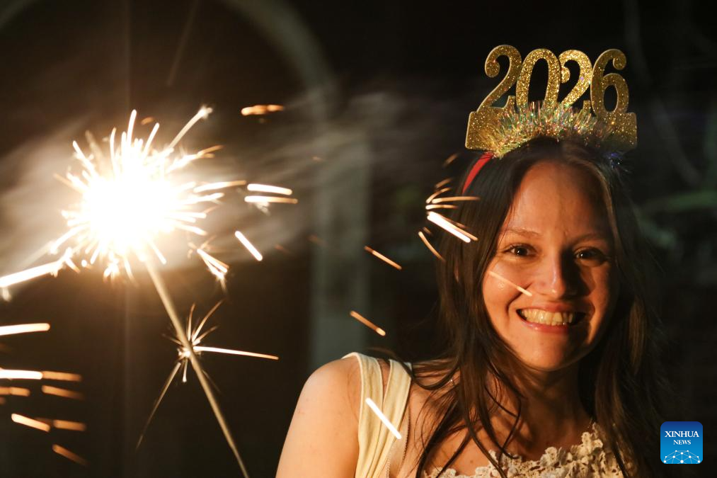 A girl celebrates the New Year at El Tunco Beach, La Libertad, El Salvador, Dec. 31, 2025. (Photo by Alexander Pena/Xinhua)
