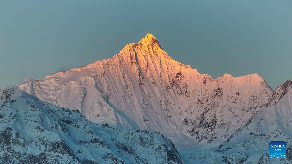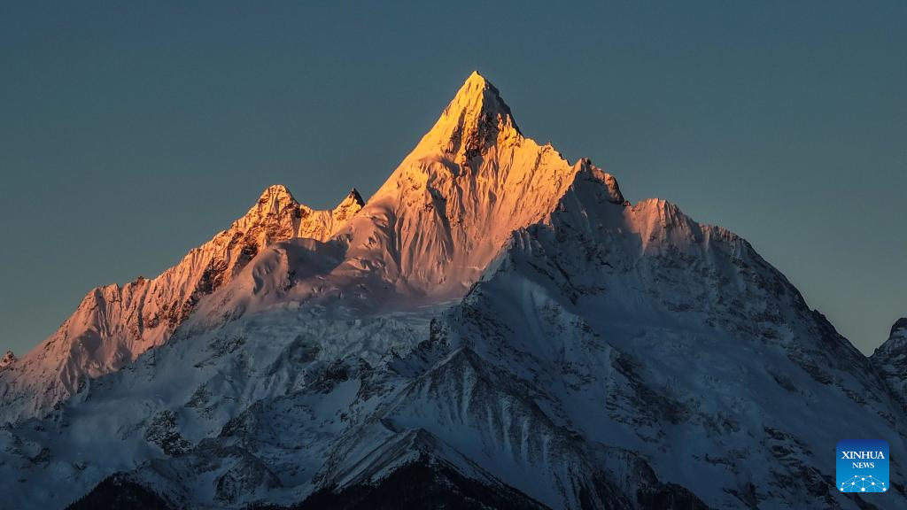 This photo taken on Jan. 1, 2026 shows sunlight shining on the Meili Snow Mountain in Deqen County, southwest China's Yunnan Province. People across China welcome the arrival of 2026 at sunrise. (Photo by Li Chunlei/Xinhua)