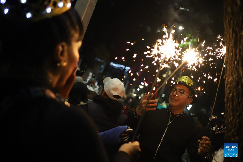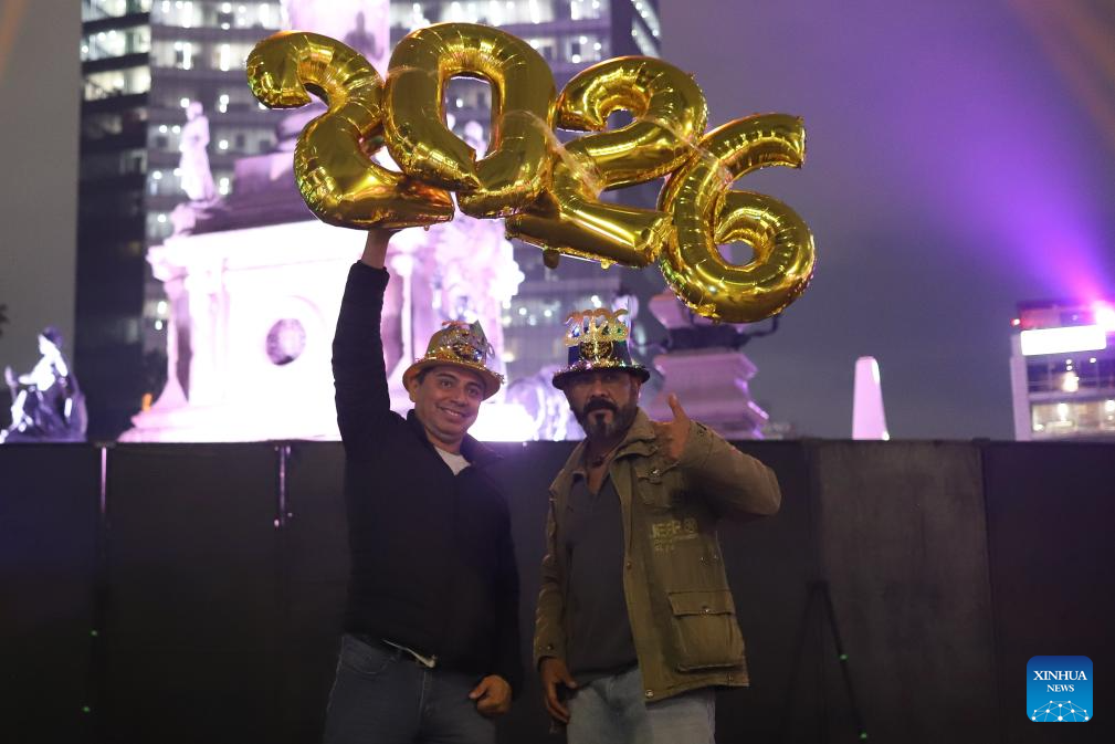 People participate in a celebration to greet the New Year in Mexico City, the capital of Mexico, Dec. 31, 2025. (Photo by Daniel Augusto/Xinhua)