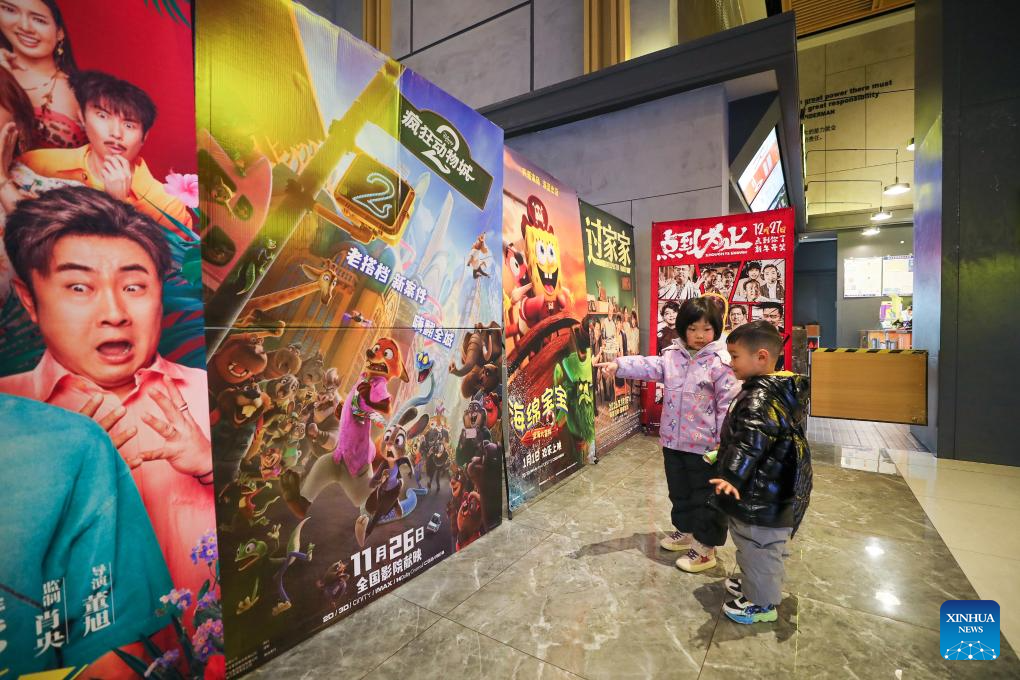 Children check out a poster for the movie "Zootopia II" at a cinema in Hai'an, east China's Jiangsu Province on Jan. 2, 2026. China's economy kicked off 2026 with robust momentum, as evidenced by bustling economic activity in the year's first days. (Photo by Gu Binbin/Xinhua)