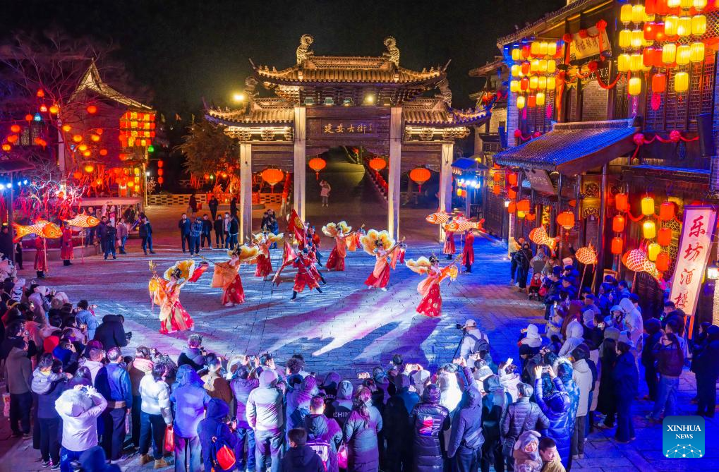 Tourists watch a performance at a heritage park in Luoyang, central China's Henan Province, Jan. 1, 2026. China's economy kicked off 2026 with robust momentum, as evidenced by bustling economic activity in the year's first days. (Photo by Huang Zhengwei/Xinhua)