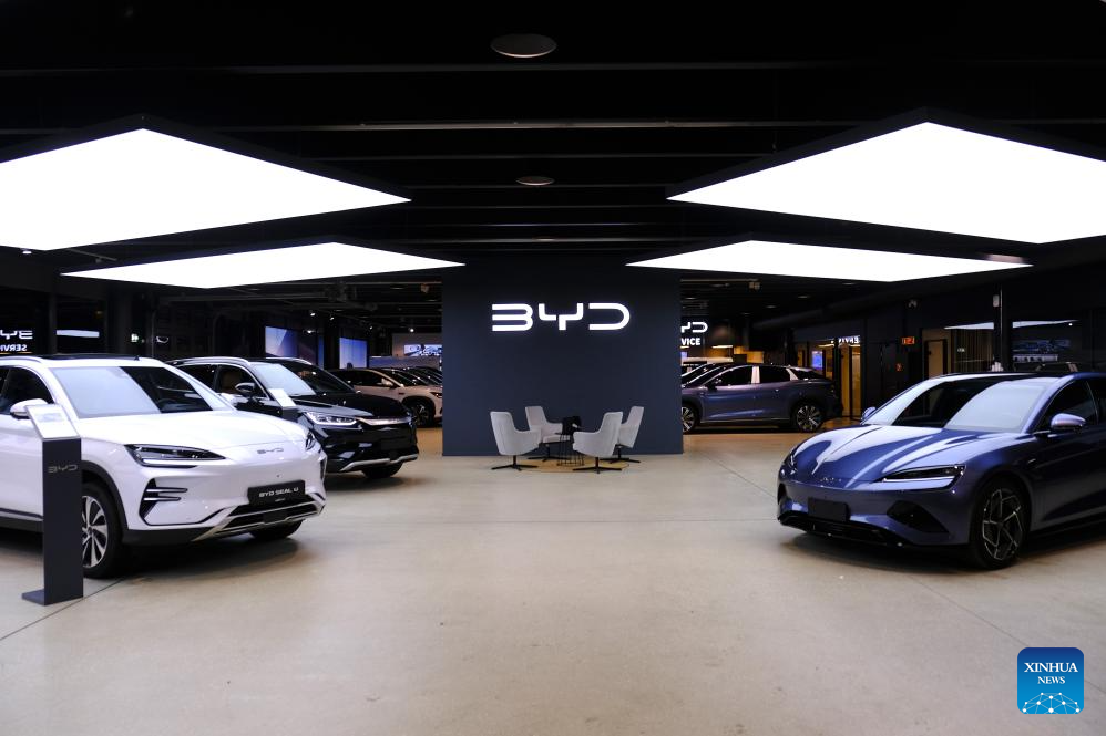 This photo taken on Jan. 2, 2026 shows a dealership of Chinese automaker BYD in Oslo, the capital of Norway. Chinese car brands continued to gain ground in the Norwegian new car market in 2025, accounting for 13.7 percent of all newly-registered passenger cars, according to new data released Friday. (Photo by Chen Yaqin/Xinhua)