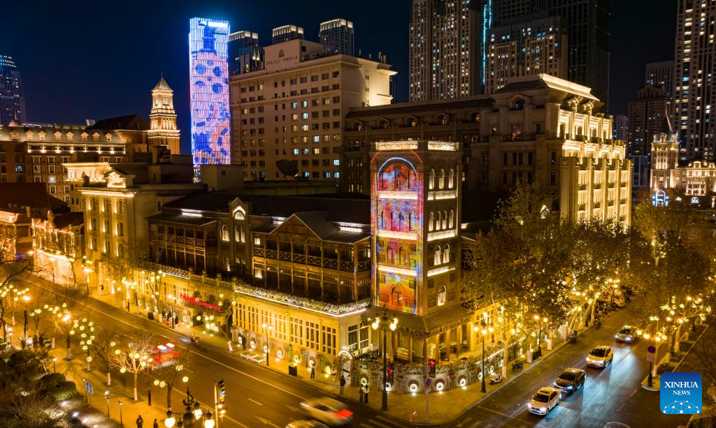 An aerial drone photo taken on Jan. 1, 2026 shows the Astor Hotel Tianjin standing in the Jiefang North Road historical and cultural block in Tianjin, north China. (Xinhua/Zhao Zishuo)