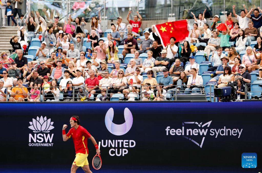 SYDNEY, Jan. 3 (Xinhua) -- Zhang Zhizhen produced a stirring performance on Saturday to overcome Zizou Bergs in a comeback victory as China edged Belgium at the mixed teams United Cup tennis tournament in Sydney.