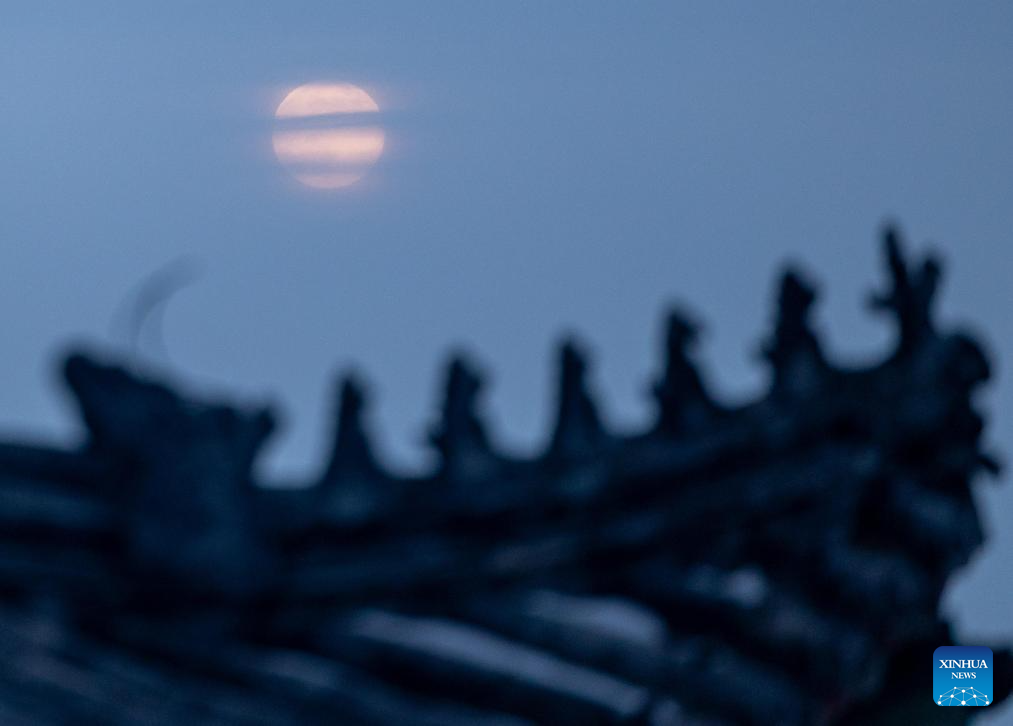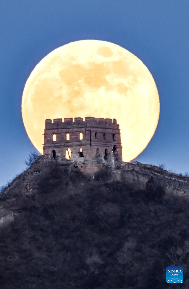 This photo taken on Jan. 3, 2026 shows the moon over the Panlongshan section of the Gubeikou Great Wall in Beijing, capital of China. The first super moon of 2026, characterized by the moon's unusually close proximity to Earth, resulting in a larger and brighter appearance, showed in the sky on Saturday. (Xinhua/Chen Yehua)
