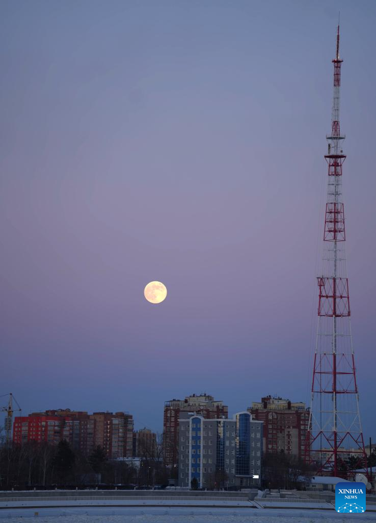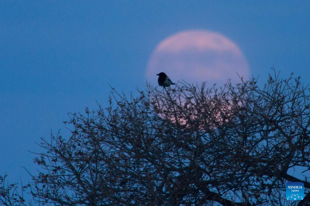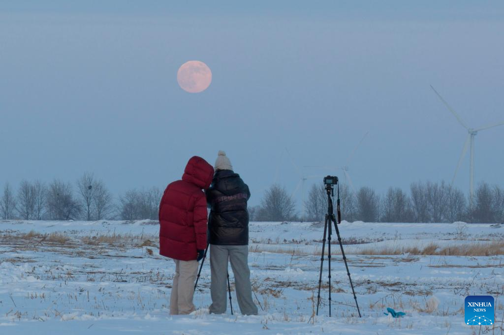 This photo taken on Jan. 3, 2026 shows the moon over Qiqihar City, northeast China's Heilongjiang Province. The first super moon of 2026, characterized by the moon's unusually close proximity to Earth, resulting in a larger and brighter appearance, showed in the sky on Saturday. (Photo by Wang Yonggang/Xinhua)