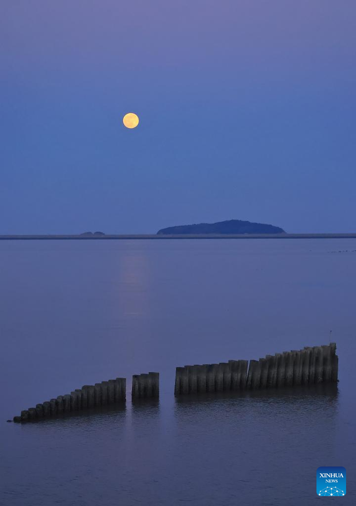 This photo taken on Jan. 3, 2026 shows the moon over Lianyungang City, east China's Jiangsu Province. The first super moon of 2026, characterized by the moon's unusually close proximity to Earth, resulting in a larger and brighter appearance, showed in the sky on Saturday. (Photo by Wang Jianmin/Xinhua)