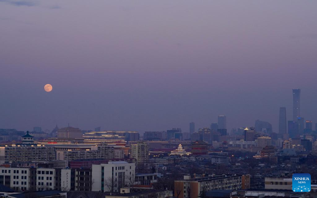 This photo taken on Jan. 3, 2026 shows the moon over Beijing, capital of China. The first super moon of 2026, characterized by the moon's unusually close proximity to Earth, resulting in a larger and brighter appearance, showed in the sky on Saturday. (Xinhua/Du Juanjuan)