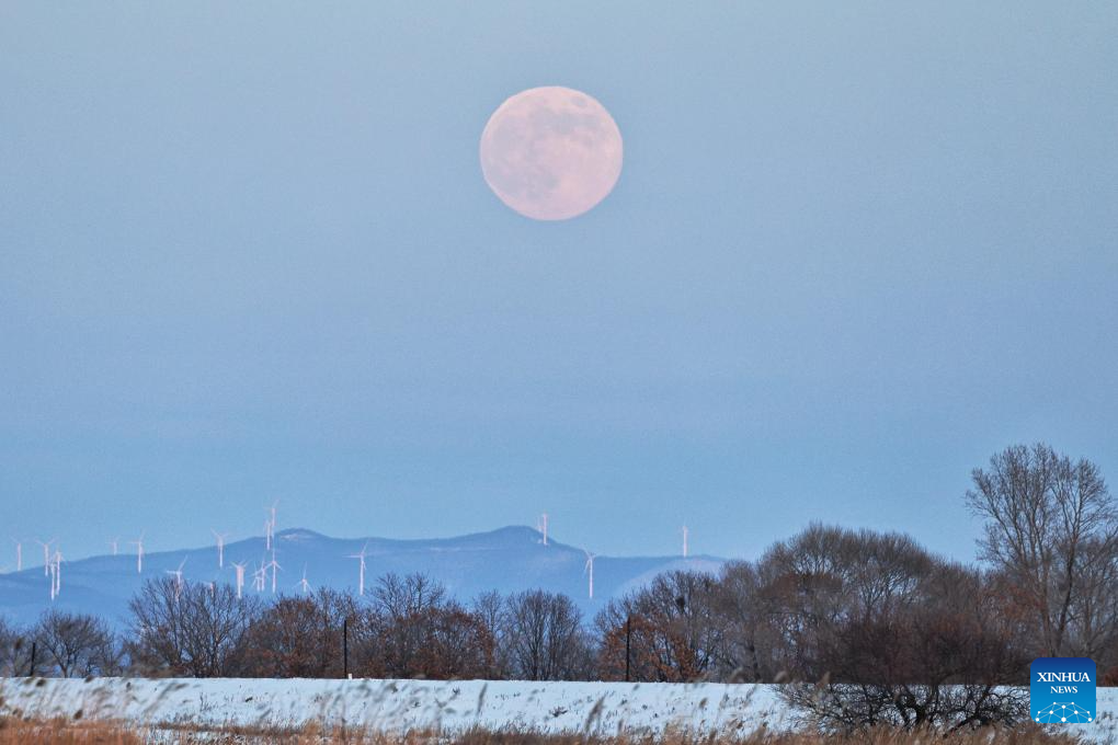 This photo taken on Jan. 3, 2026 shows the moon over Jiayin County, Yichun City, northeast China's Heilongjiang Province. The first super moon of 2026, characterized by the moon's unusually close proximity to Earth, resulting in a larger and brighter appearance, showed in the sky on Saturday. (Photo by Li Shaojun/Xinhua)