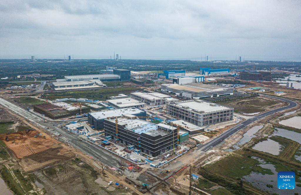 An aerial drone photo taken on Dec. 26, 2025 shows a view of the aerospace industrial cluster under construction, with the Hainan commercial spacecraft launch site and the Wenchang Spacecraft Launch Site in the background, in Wenchang, south China's Hainan Province. (Xinhua/Pu Xiaoxu)