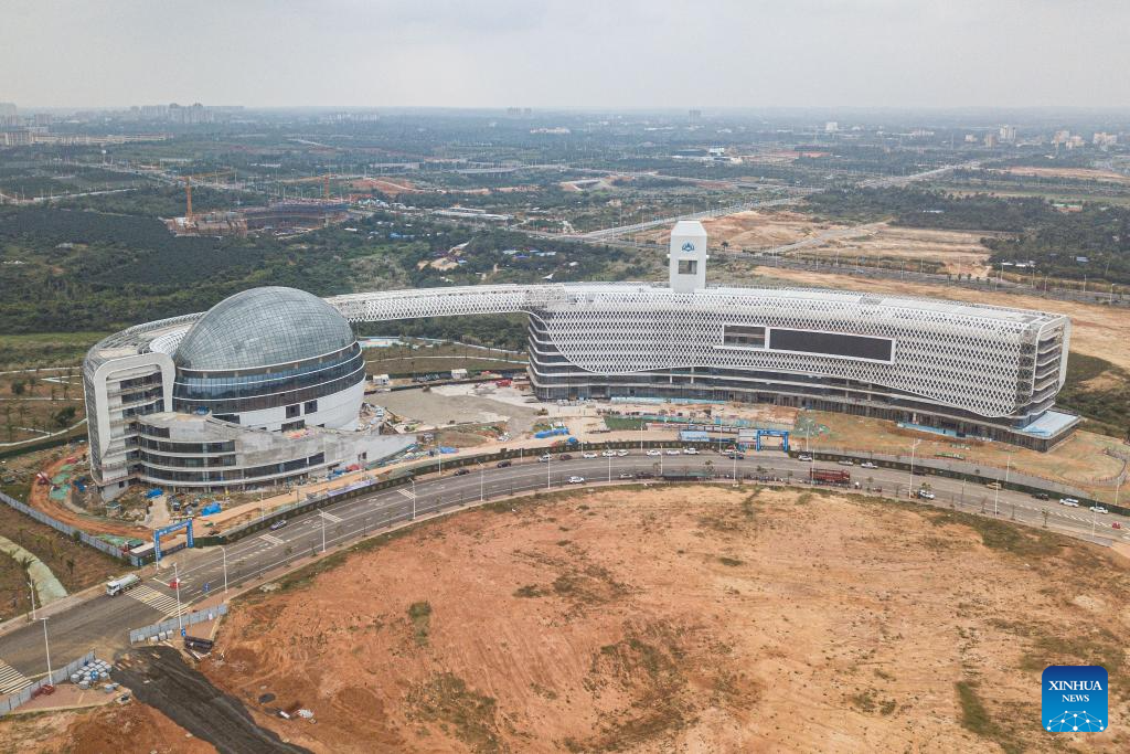 An aerial drone photo taken on Jan. 2, 2026 shows the construction site of an aerospace innovation base in Wenchang, south China's Hainan Province. (Xinhua/Pu Xiaoxu)