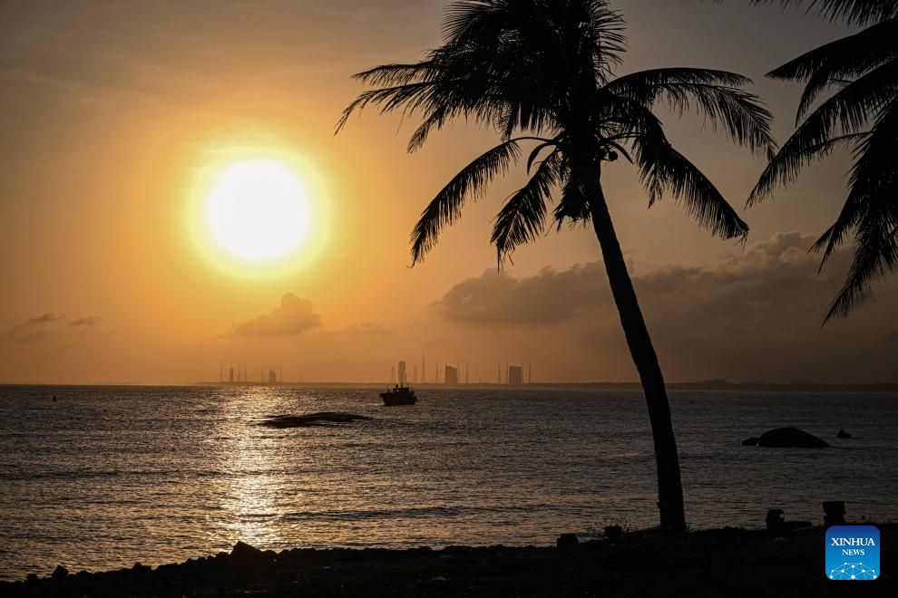 This photo taken on Dec. 24, 2025 on the beach in Wenchang City, south China's Hainan Province shows a view of the Wenchang Spacecraft Launch Site and the Hainan commercial spacecraft launch site. (Xinhua/Pu Xiaoxu)