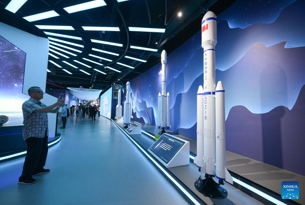 Tourists visit the Wenchang Aerospace Science and Education Center in Wenchang, south China's Hainan Province, Dec. 23, 2025. (Xinhua/Pu Xiaoxu)
