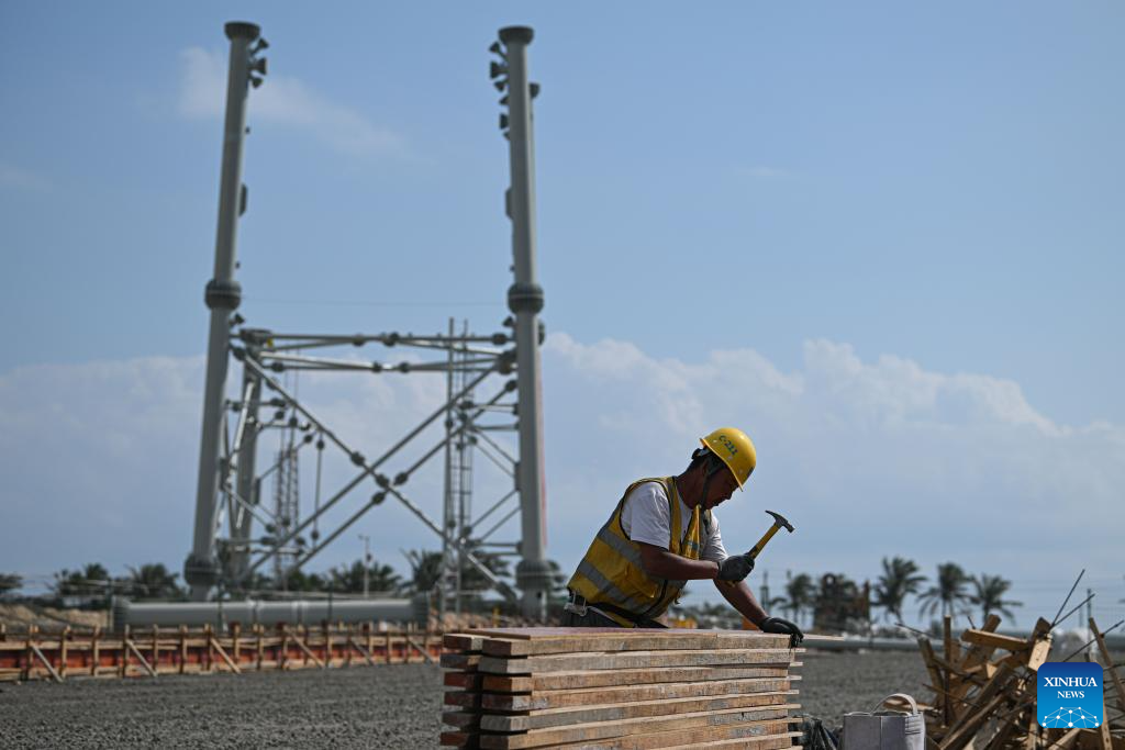 A worker is seen busy at the construction site of the second phase of the Hainan commercial spacecraft launch site in Wenchang, south China's Hainan Province, Dec. 29, 2025. (Xinhua/Pu Xiaoxu)