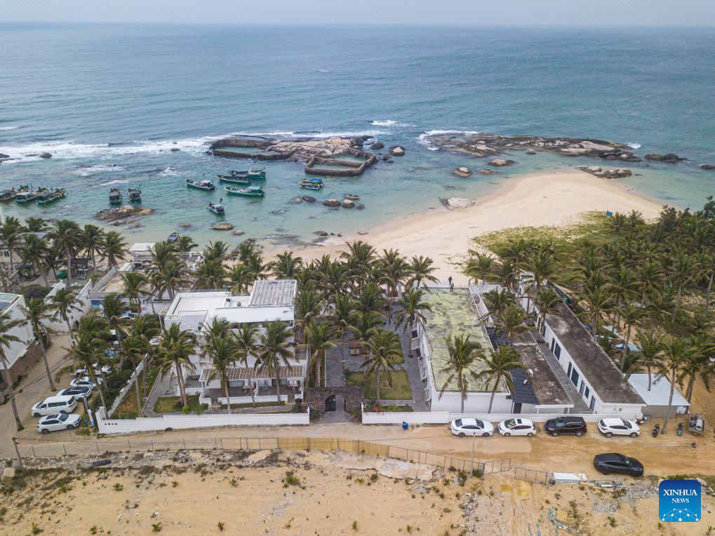 An aerial drone photo taken on Dec. 26, 2025 shows a homestay on the beach in Longlou Town of Wenchang City, south China's Hainan Province. (Xinhua/Pu Xiaoxu)