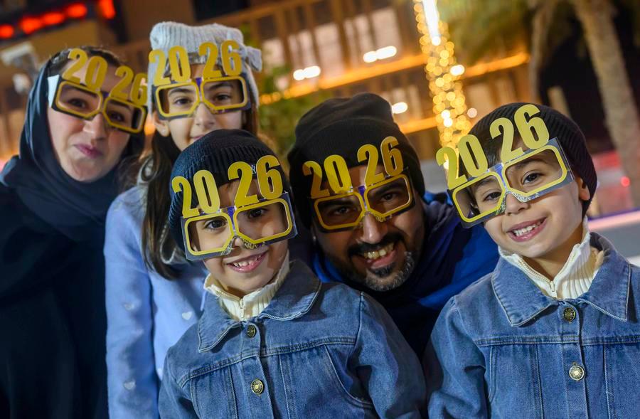 CAIRO, Jan. 3 (Xinhua) -- Fireworks flared above the Middle East as 2026 arrived, bursting into gold and white over new skylines and ancient quarters alike. From Egypt's desert capital to the Gulf's glass towers and the streets in Damascus, crowds welcomed the Year 2026 with music, phones held aloft, and countdowns shouted in unison.