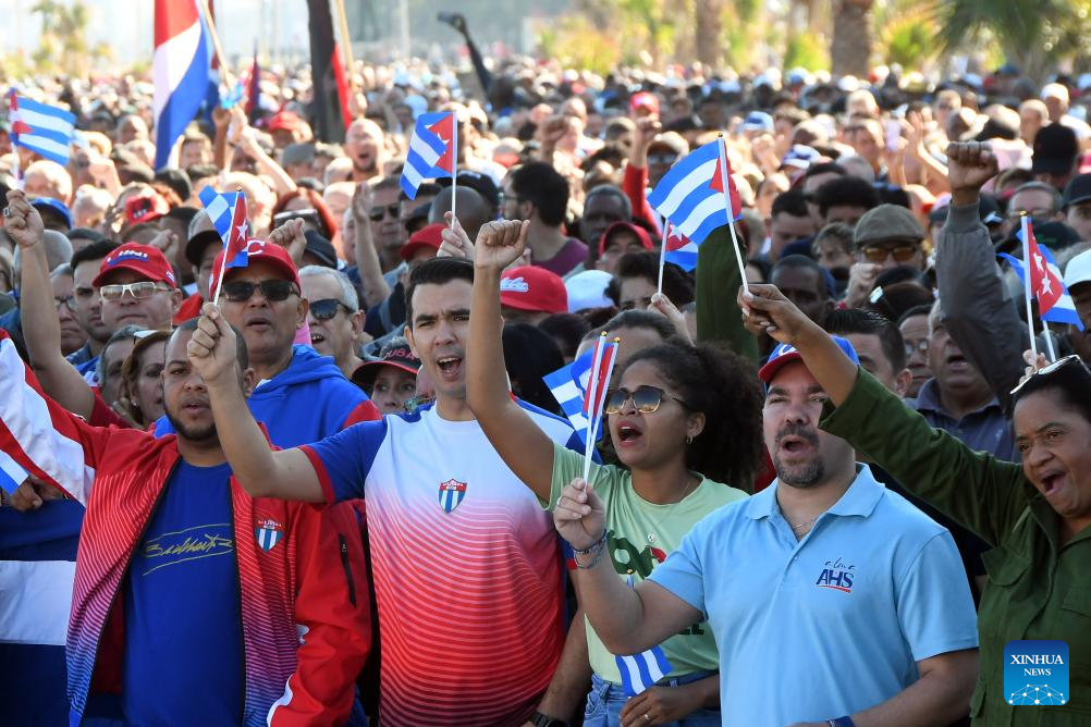 People attend an event condemning the U.S. military aggression against Venezuela in Havana, capital of Cuba, Jan. 3, 2026. (Photo by Joaquin Hernandez/Xinhua)