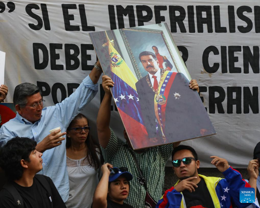People protest against the latest U.S. strikes on Venezuela and its capture of President Nicolas Maduro in Quito, Ecuador, on Jan. 3, 2026. (Photo by Ricardo Landeta/Xinhua)