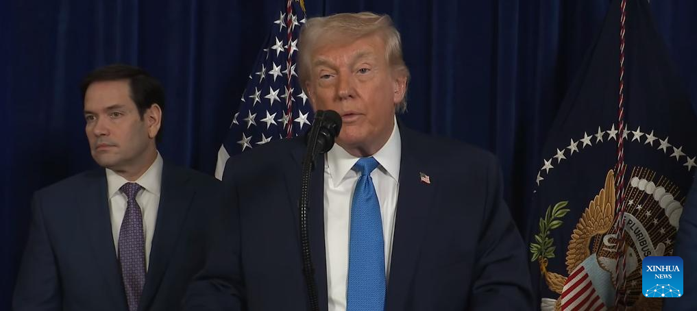 A screen shot taken from a video released by the White House shows U.S. President Donald Trump holding a press conference at the Mar-a-Lago estate in Palm Beach, Florida, the United States, Jan. 3, 2026. U.S. raid "a heavily fortified military fortress in the heart of Caracas" to capture Maduro -- Trump (Xinhua)