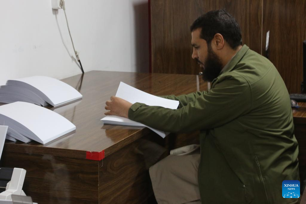 A blind staff member of the National Press Braille proofreads printed Braille books in Kabul, Afghanistan, Dec. 31, 2025.(Photo by Saifurahman Safi/Xinhua)